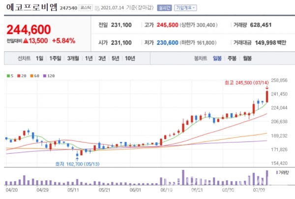서지용 상명대 경영학부 교수는 "이차전지를 비롯해 미래 유망한 사업을 영위해 현재 에코프로비엠을 비롯해 에코프로 그룹주는 코스닥시장 상위권에 머물러 있다"고 말했으나, "단순히 주가 상승이라고 하는 까닭으로 개인 투자자들이 무리하게 몰린다면 신중을 기해야 한다"고 경고했답니다.