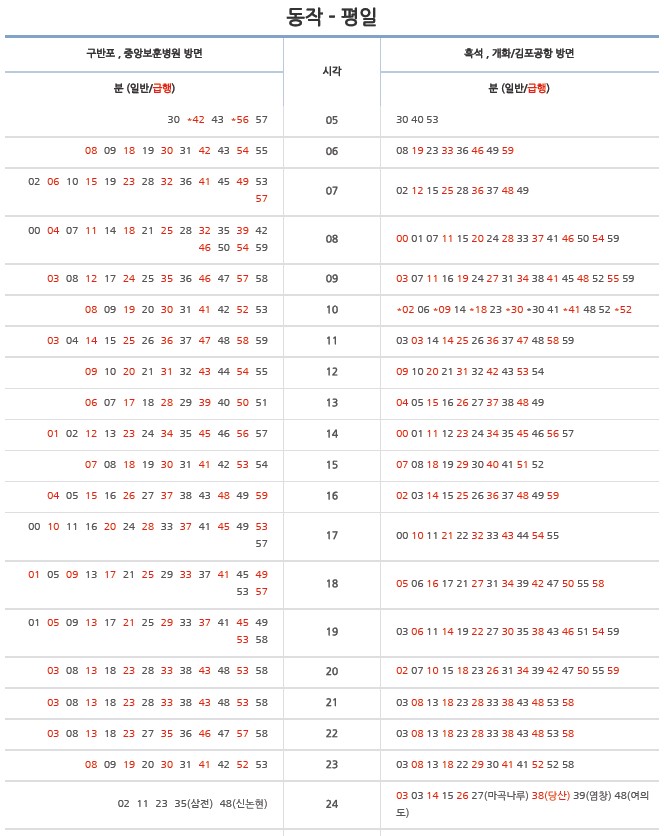 급행시간표는 해당 역마다 안착시간이 모두 다르므로 서울시 메트로 9호선 홈페이지를 통해 현재 자리잡은 역을 검색하시면 세밀한 급행 시간을 확인하실 수 있고요.