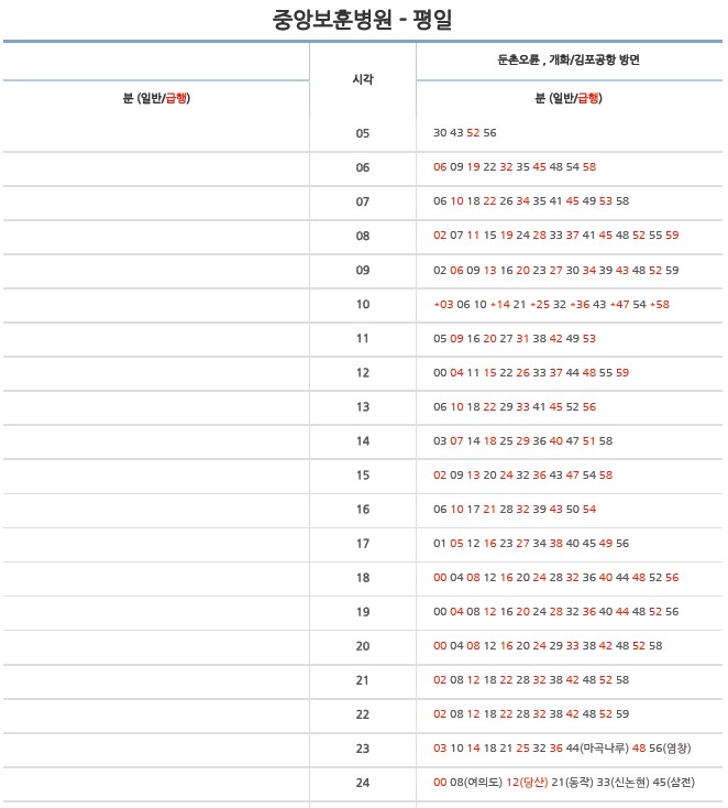 특정 구간은 급행이라고 하여 거의 역에 정차하는 게 아닌 특정 몇 개 역만 지나고 신속하게 이동할 수 있는 게 있습니다 그중에서 많은 분들이 활용하고 있는 수도권 지하철 9호선 급행 노선 시간표와 정차역을 한번 볼게요.